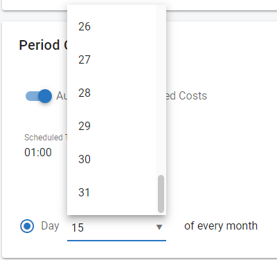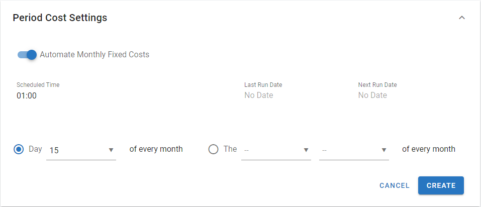 Automate Monthly Fixed Costs | This Toggle is the “Global” Master switch to turn on the Period Cost Automated Process. |