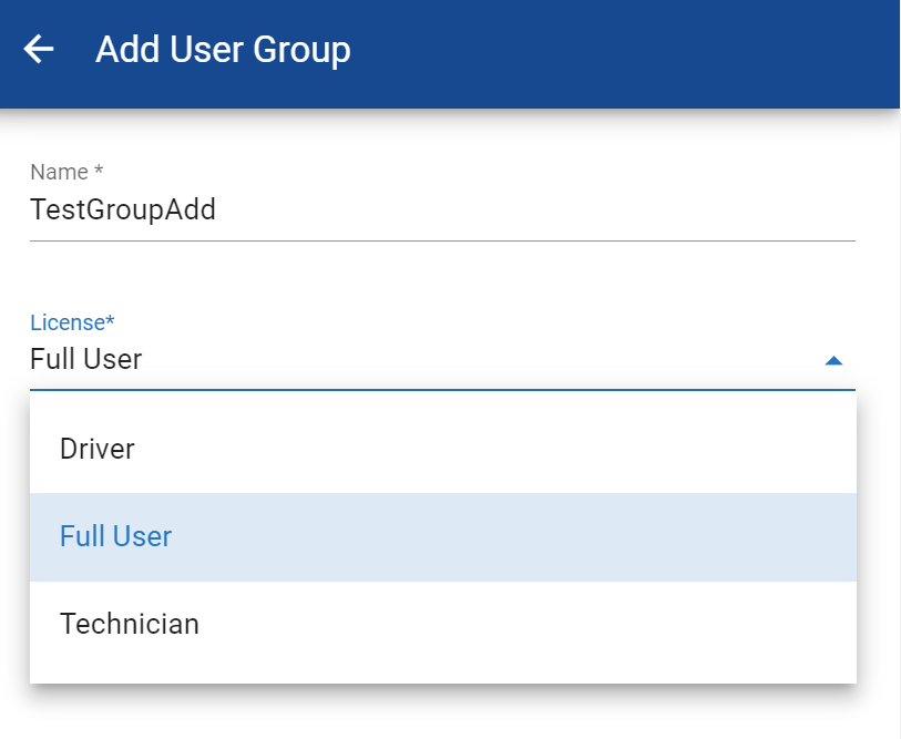 Select the type of User License that it is associate with