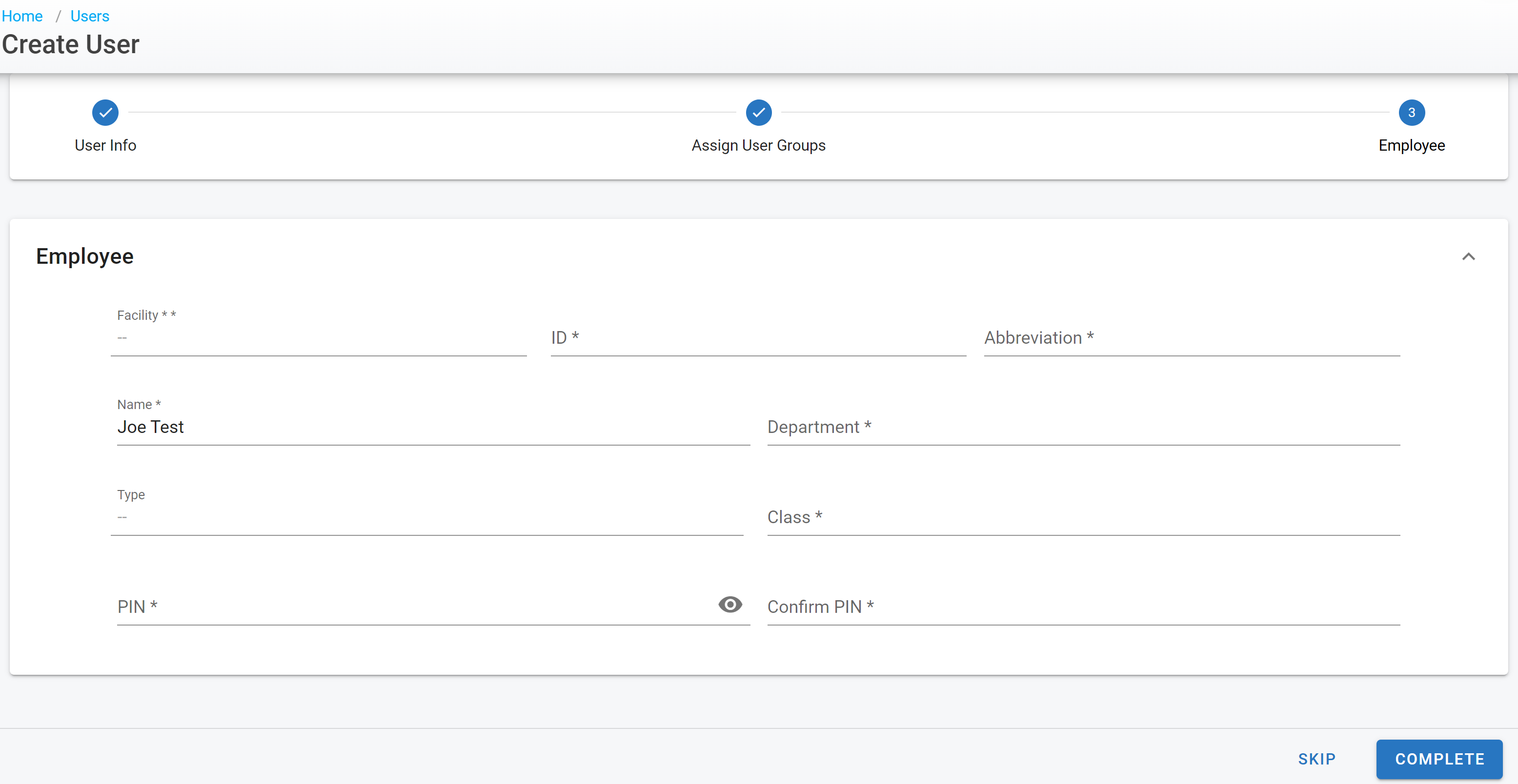 Once the above has been completed, continue to sync and set up the user by visiting the file tabs and completing the information. At minimum, the steps for the Groups tab must be completed for the user to be able to function within the system