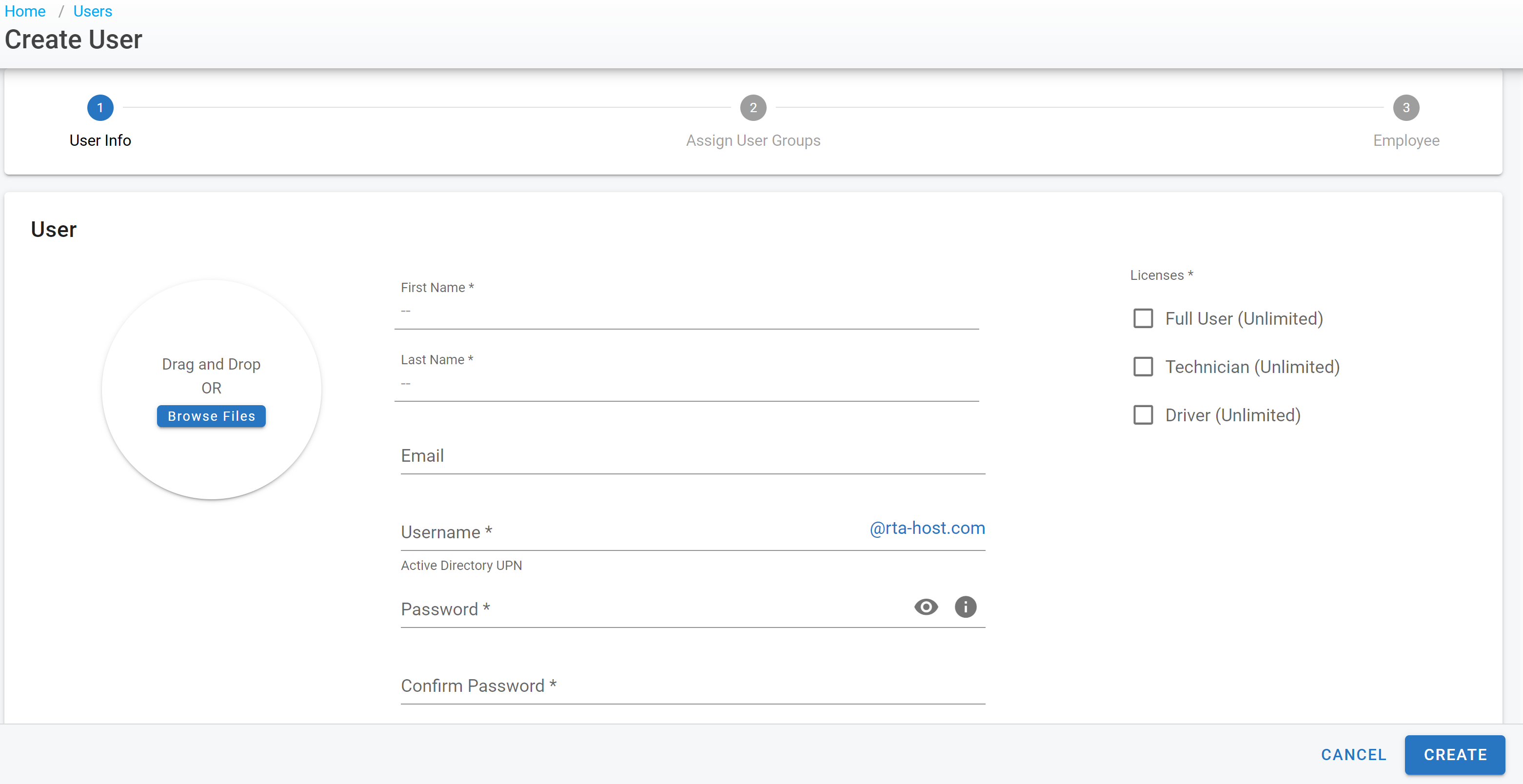 Before attempting to add users, be sure there are available licenses, and that the proper user group(s) are decided upon.