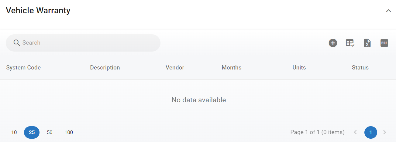 Under the Asset Management Tab, locate the Vehicle Warranty Panel
