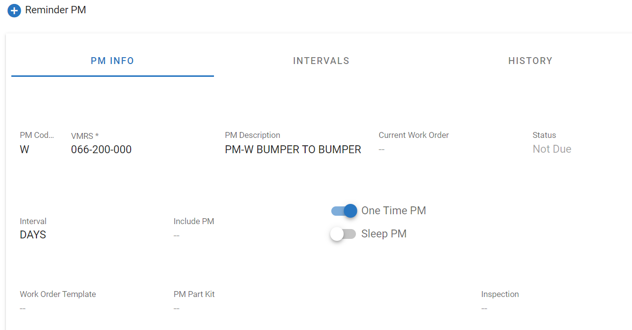 This is where the warranty reminder PM comes in handy. Setting this reminder up creates a one-time PM allowing the asset to be pulled into the shop, thoroughly checked, and transporting it to the warranty vendor for any work that is needed that is covered under the warranty prior to its warranty expiration.