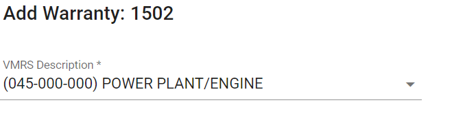 VMRS - Select the appropriate PM VMRS code to be used for the warranty (This should be set up in the VMRS codes prior to use here)