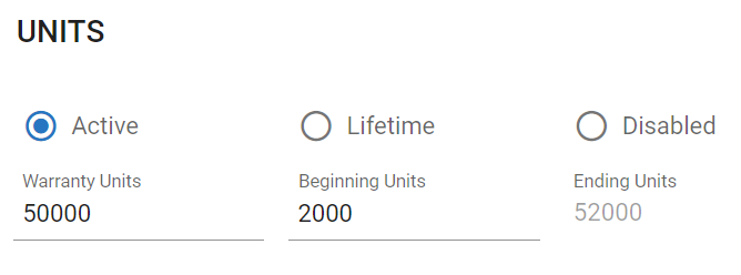 Under Units, add the following if extended warranty coverage has a unit/meter based duration: