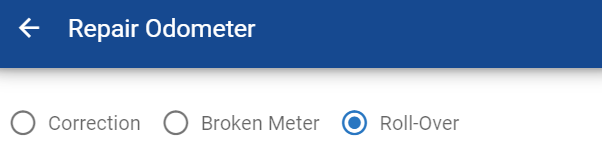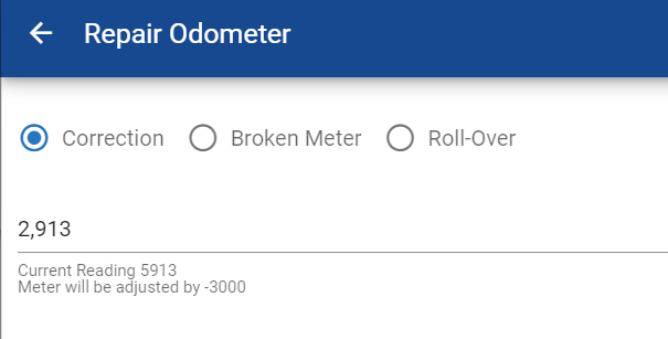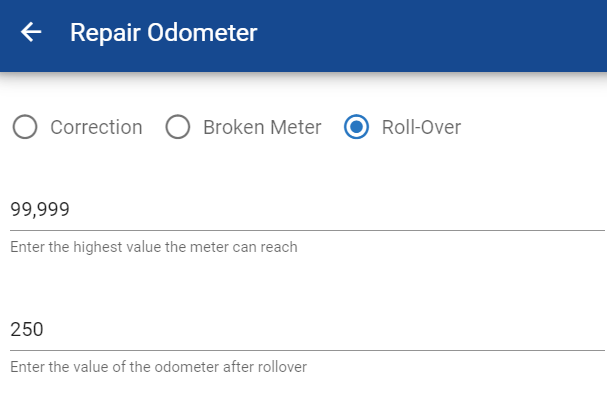 Enter the value of the odometer after the rollover (this is the reading that the rolled over meter is now displaying)