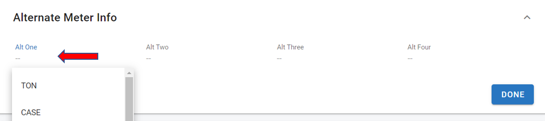 Select the Alternate Meter Type to be adjusted using the dropdown