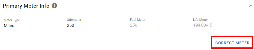 Errors can happen when meter readings are updated or input when adding a vehicle. RTA can help with correcting a meter reading by following the below steps. The correction feature will update the Odometer, Fuel, and Life Meter.