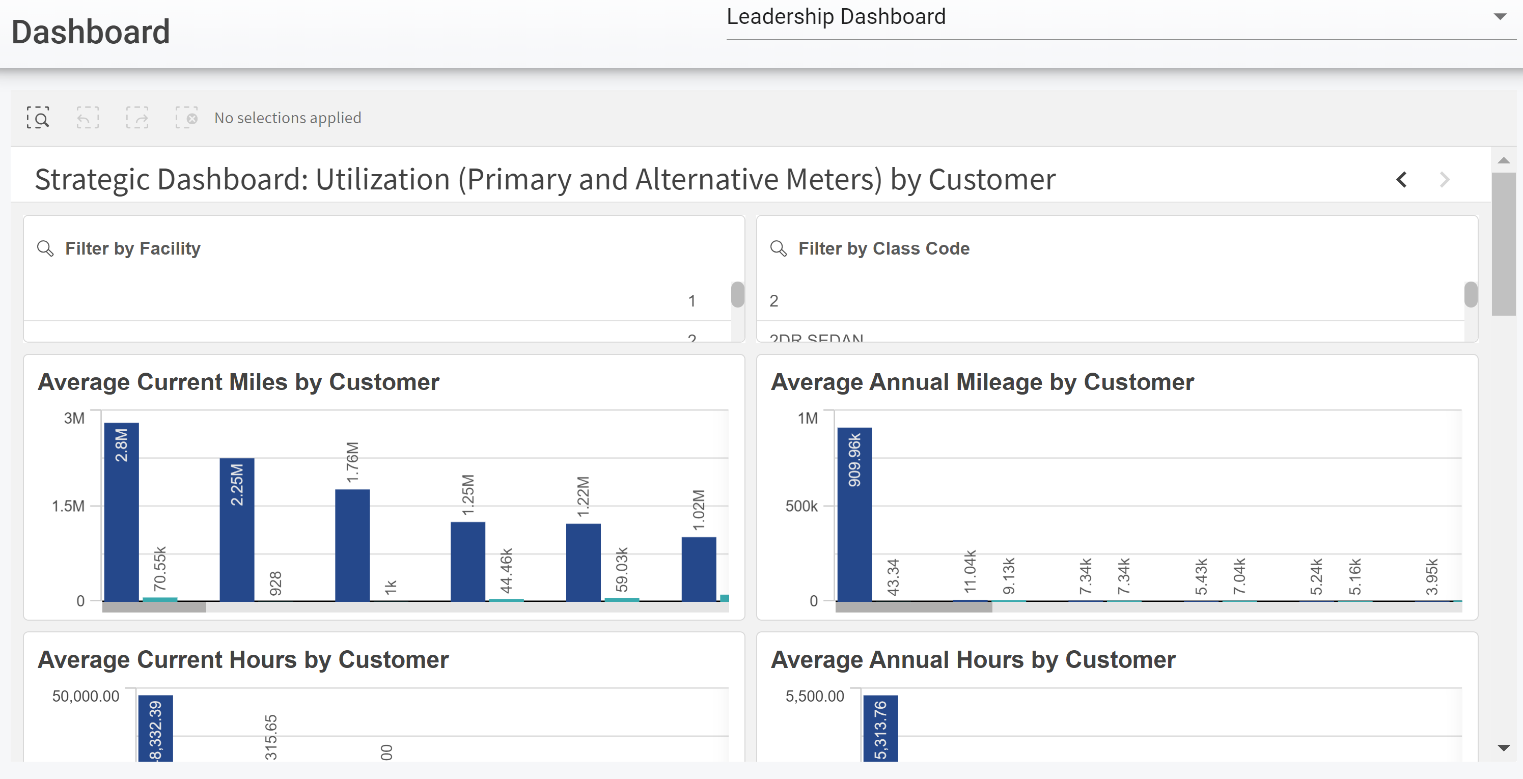 Average Current Miles by Customer | When primary or alternate meter is set to “Miles”. | Todays current average miles by customer. |