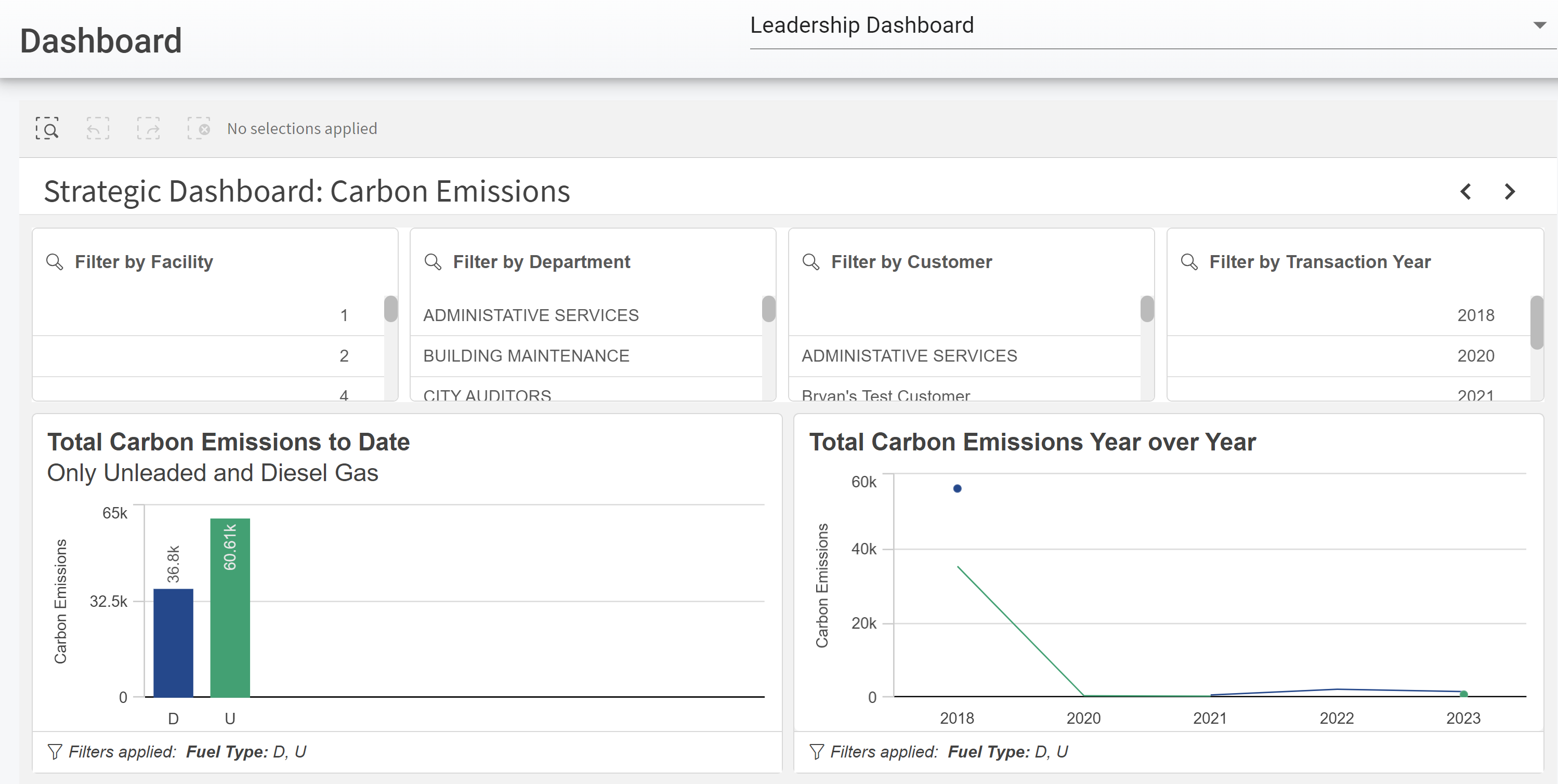 Total Carbon Emissions year over Year | Calculated based on fuel use and type. | Year over year comparison of carbon emissions. |