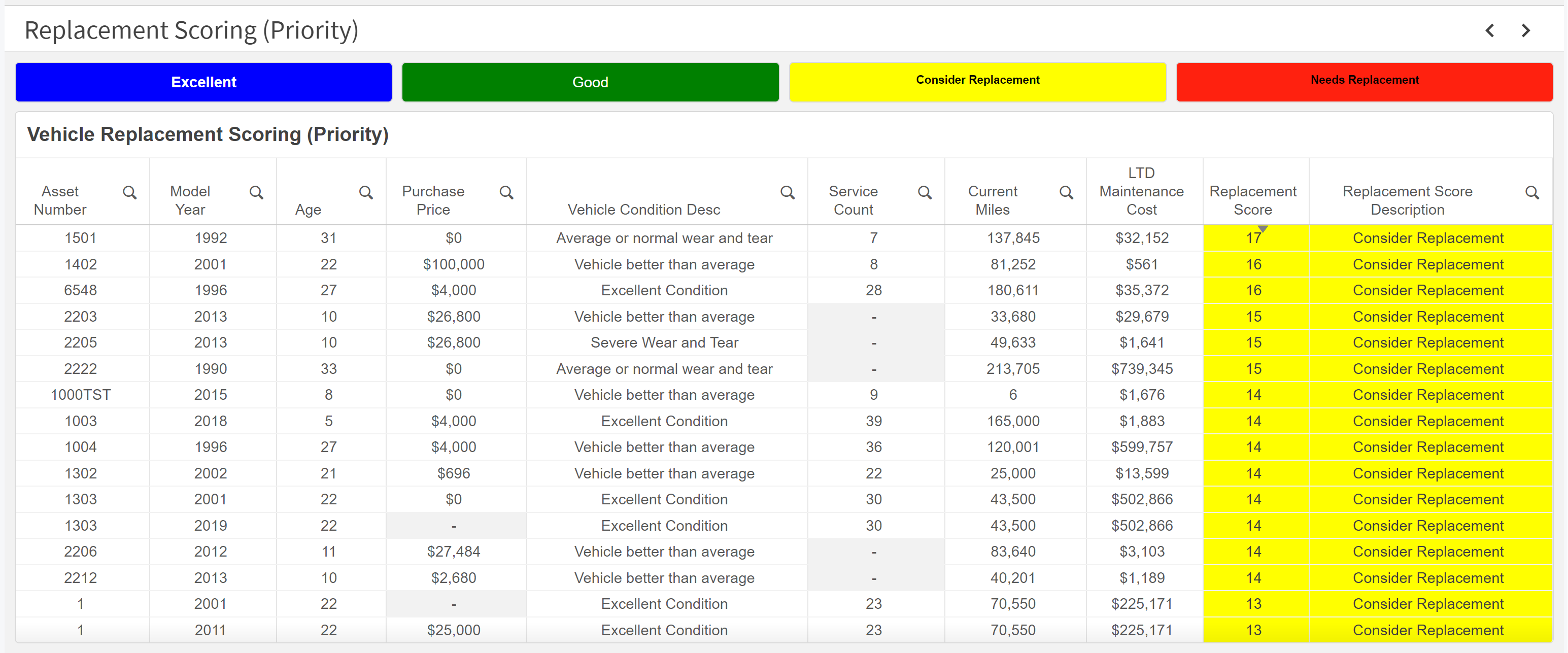 Vehicle Audit Report by Department | Line item cost by asset assigned to Departments |