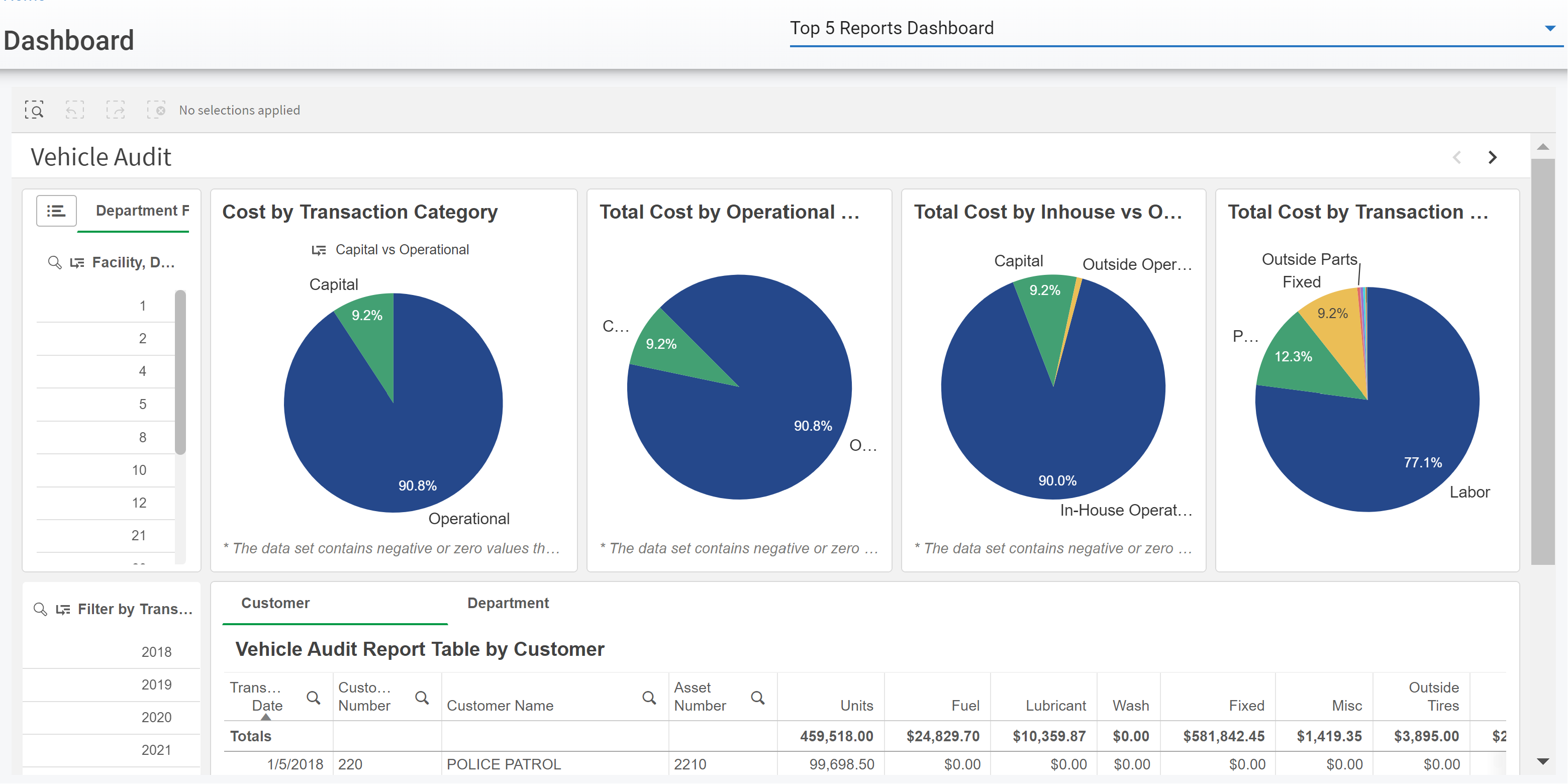 Vehicle Audit Report by Customer | Line item cost by asset assigned to Customers | |
