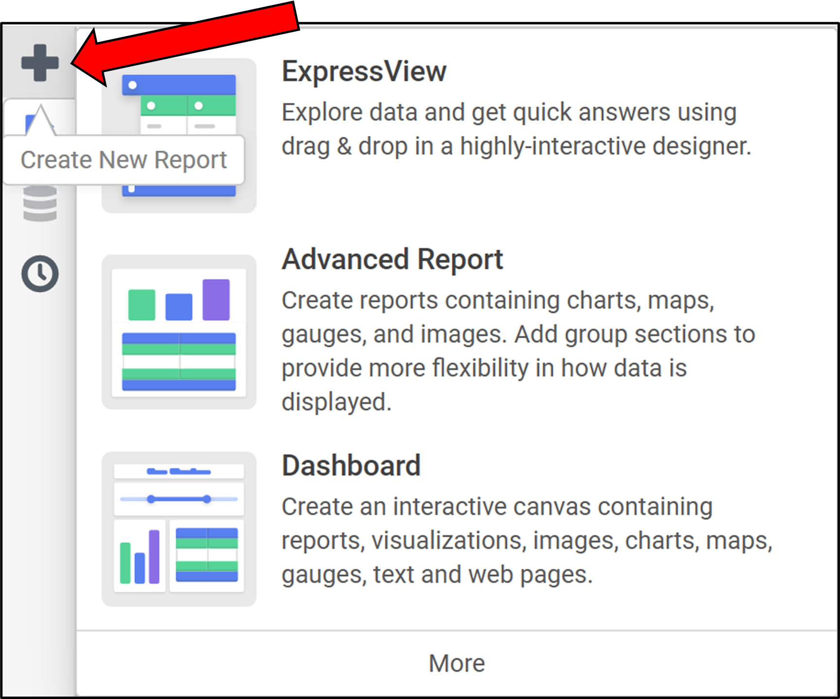By clicking the plus (+) sign at the top, will prompt you for these three report options: