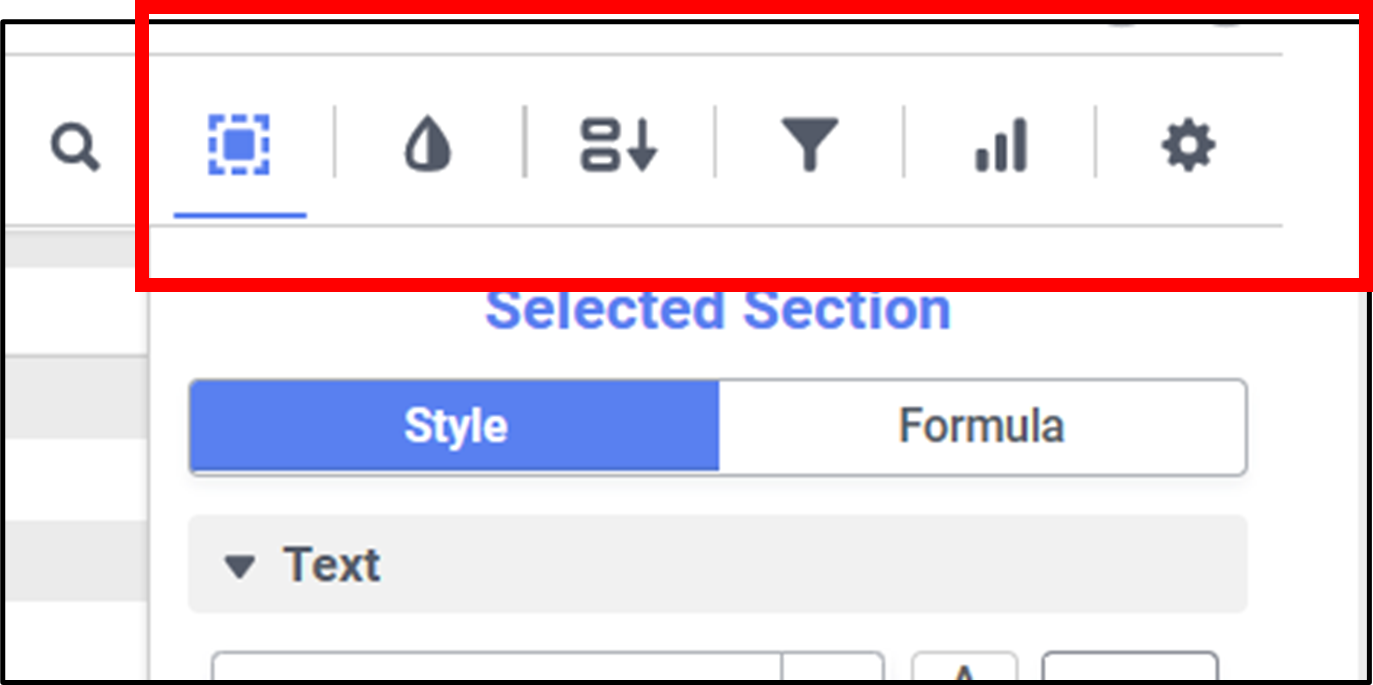 Style and Formula: Allows you to format a text cell with text font and size, bold, color…etc. You can also select the Formula tab and create a formula (such as a math equation) for the field. You can also set the cell as General, Numeric, Date, or Text. | |