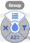 To turn a data column into a group column use radial>up. Doing this will organize the other columns into groups. Each row in the data column is a unique group of the rows in the other columns. The group column has a new color to distinguish it from the data rows. Remember to turn on Live Data to see your actual data and verify that this is the desired grouping.