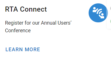 The RTA Connect Tile dials you into what’s happening with RTA Connect and gives you the ability to register.