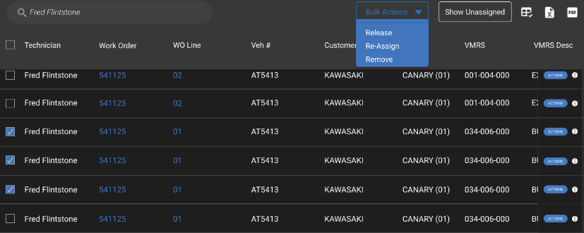 Assign Jobs, formerly known as “Schedule Jobs,” allows multiple functions to be performed in relation to managing technician hours and the jobs they are assigned to. This option is handy for assigning multiple jobs or for scheduling a set number of hours. These functions are generally performed by the shop supervisor or foreman and include the below.