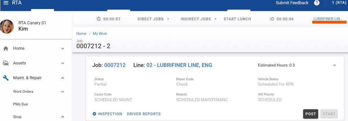 From the Job box, perform an Inspection (if one is assigned) or “Post” to include parts from the parts listing.