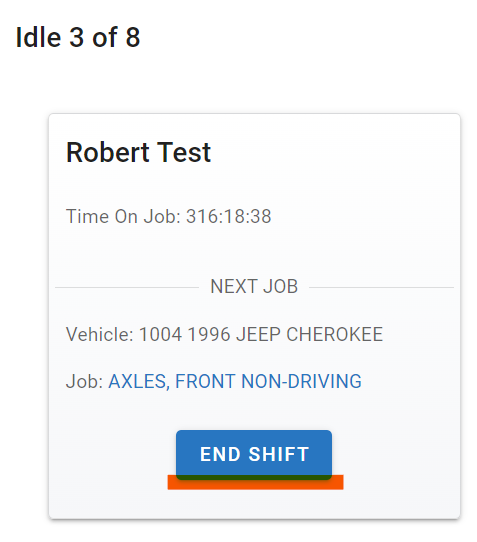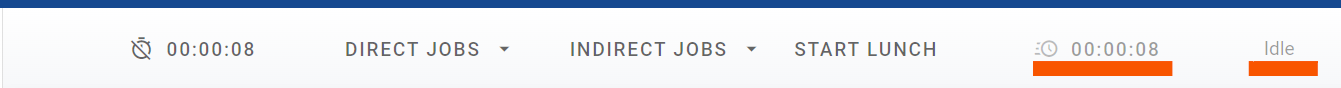 When an employee clocks in for the day, their record is activated and will register on the Activity screen as Idle. Their record will remain in Idle until they clock into a Direct or Indirect job, at which point the Activity screen will update to their new status.