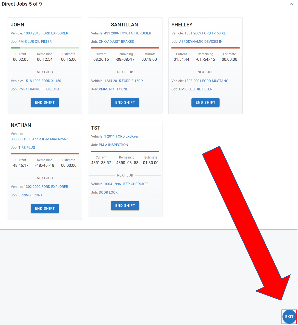 Tracking current shop activity and accountability is becoming more and more of a requirement within the shop. The Shop Activity screen on http://app.rtafleet.com provides an overview of Employee activity, including:
