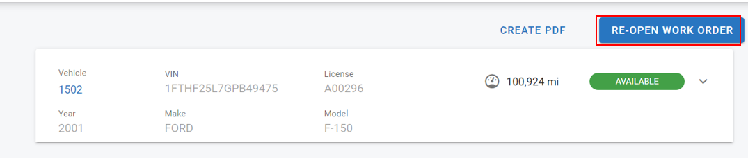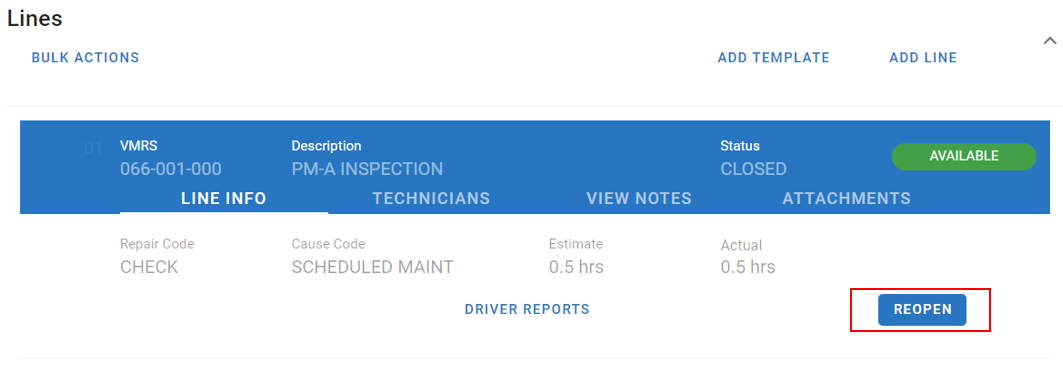 However, this does not reopen the work order line. To do that process, you will need to go down to the line details.