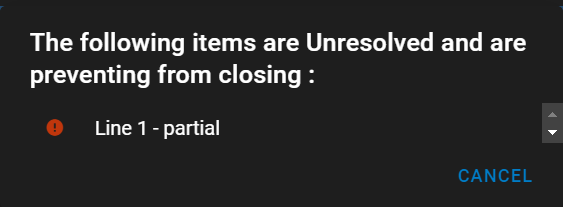 Users will have the ability to close lines and the WO itself with the click of a button. However, the user will need to ensure that all WO lines have been posted and closed before they can proceed with closing out the entirety of the WO. Failure to do so will prompt a message saying that a line is still open and will need to close soon.