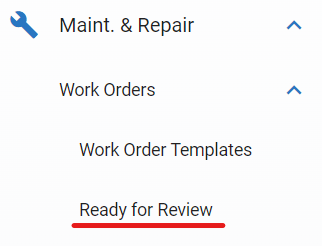 Only users who have been granted permission to the Ready for Review section will be able to access and close work orders from this area