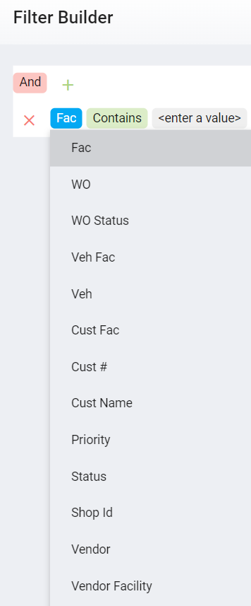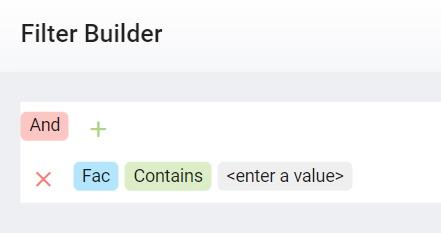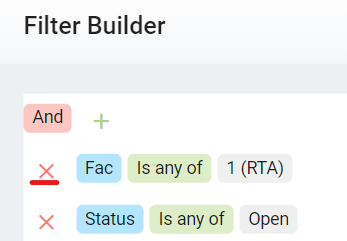 For example, in addition to the filter to only pull items in Facility 1, the user can use the add button again and also add a secondary filter for a specific department and so on