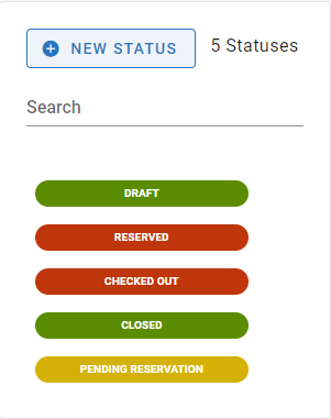 The five pre-set statuses cannot be removed. (Draft, Reserved, Checked Out, Closed, and Pending Reservation)
