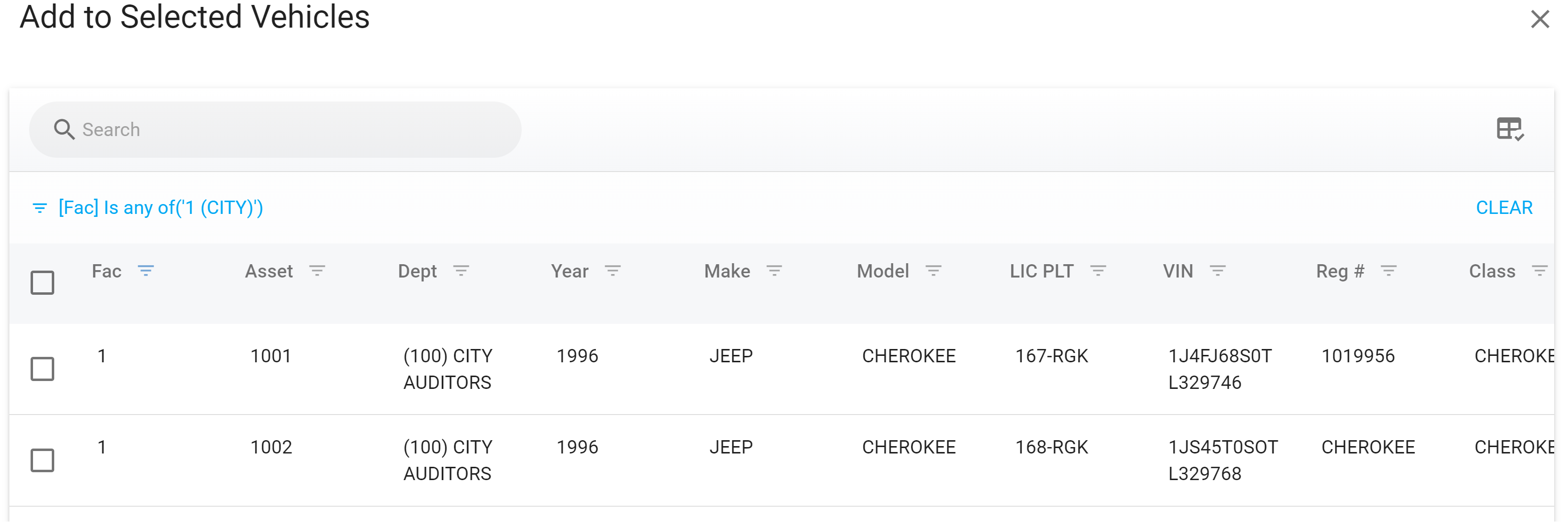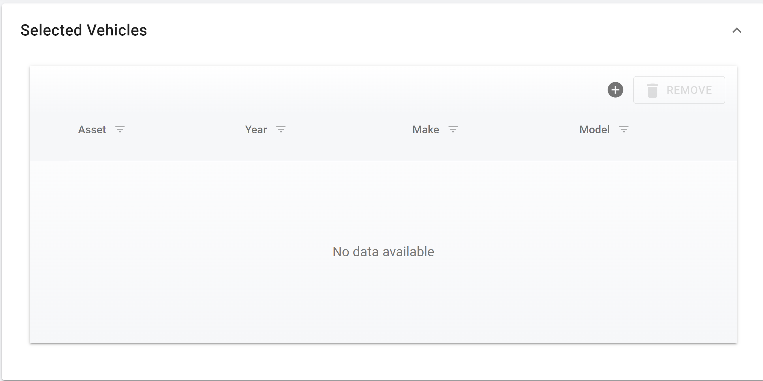 Click the plus button in the top right to get a list of available vehicles, assets and equipment