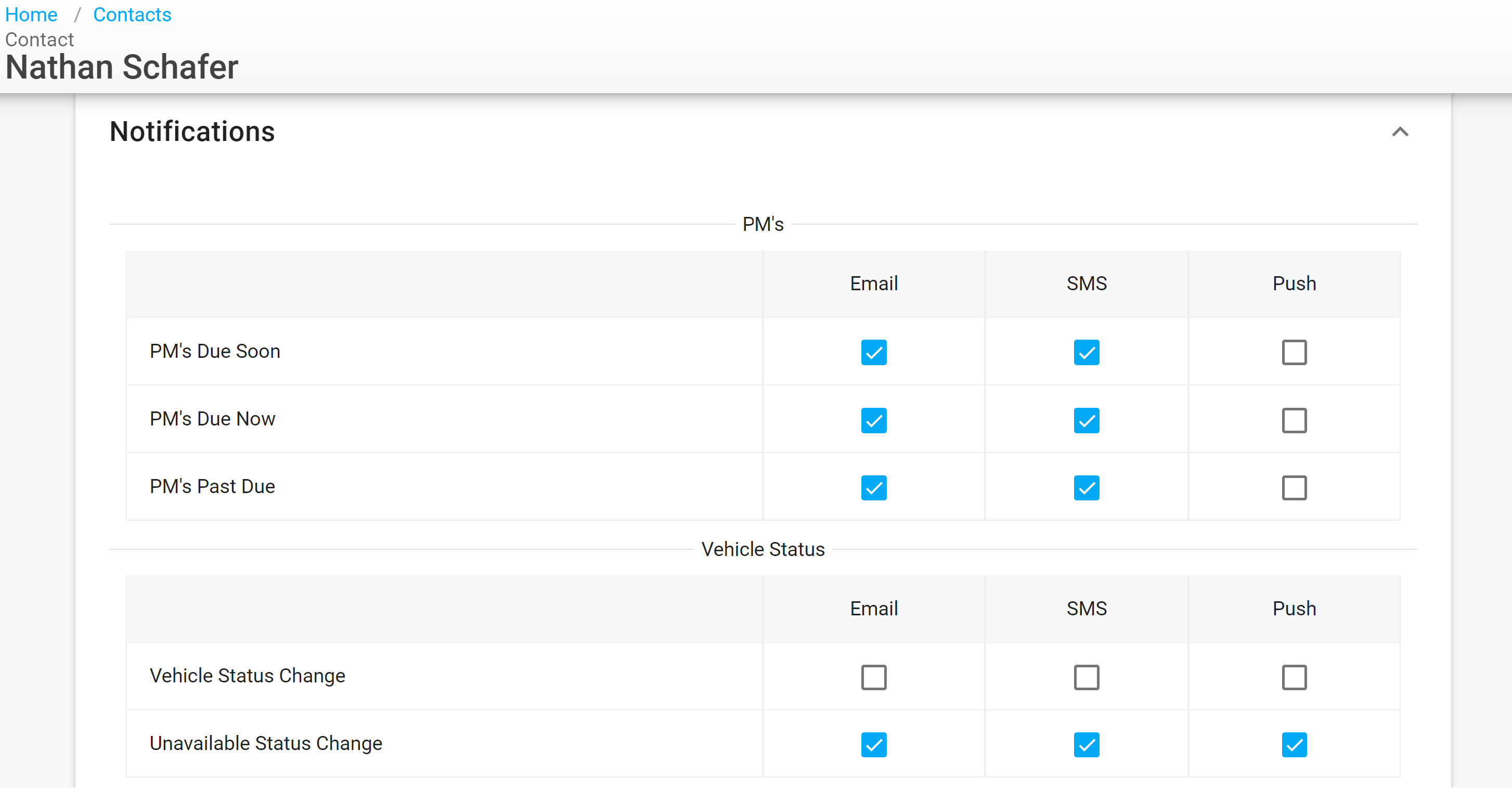 Ensure all contact information is filled out if you want notifications sent in that format. In the example I cannot receive SMS text notifications due to a phone number missing from my contact form