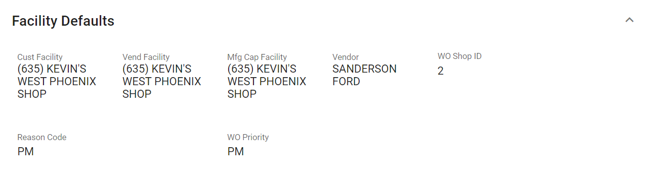 Default WO Shop ID | Desired default shop ID to be used on work orders |