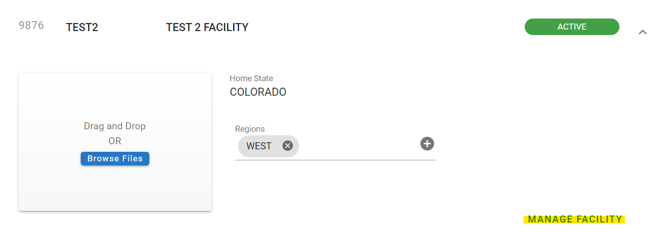 In the primary info panel of the file, click on Manage Facility
