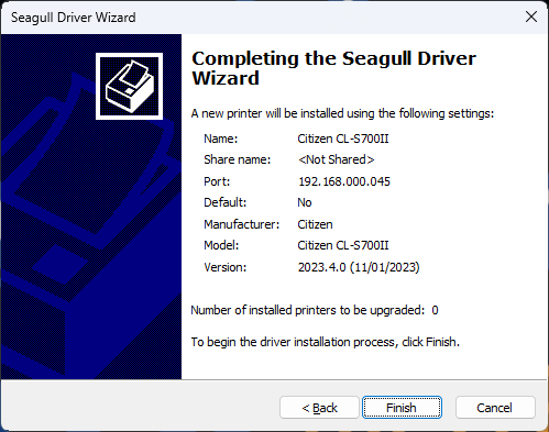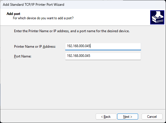 Enter in the Printer IP into the IP Address field (See the IP Address on front Printer Menu Screen)