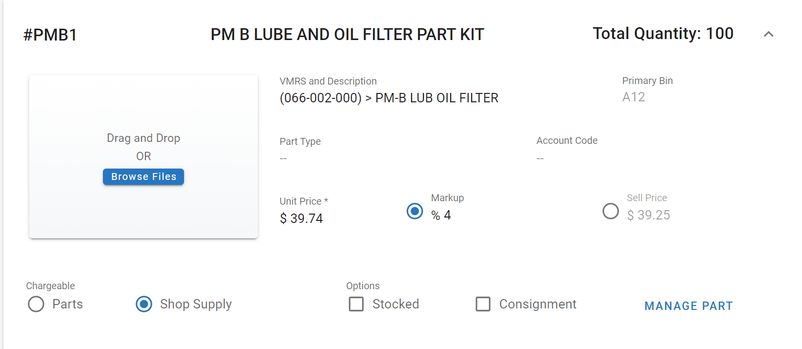 🔓 Markup – Displays the percentage markup generated for the part when applied to a work order