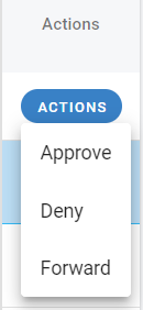 Or at the end of each PO record you can select the Actions button to individually Approve, Deny or Forward the Approval Request