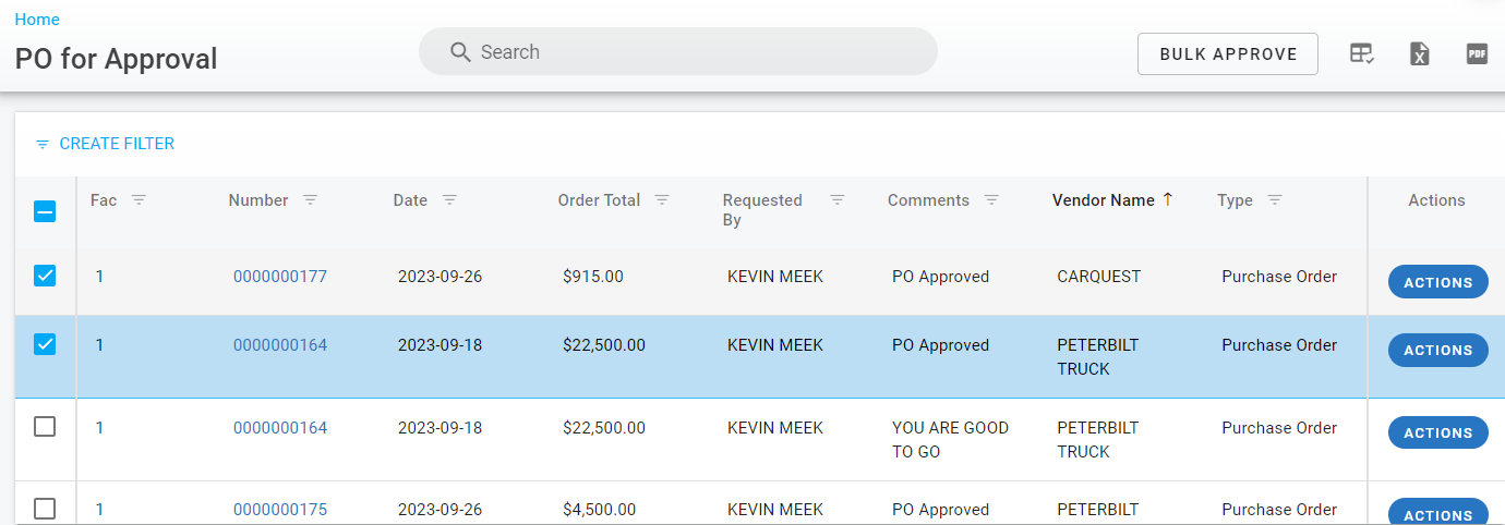 You can select several POs with the check marks in front PO’s and Click on Bulk Approve