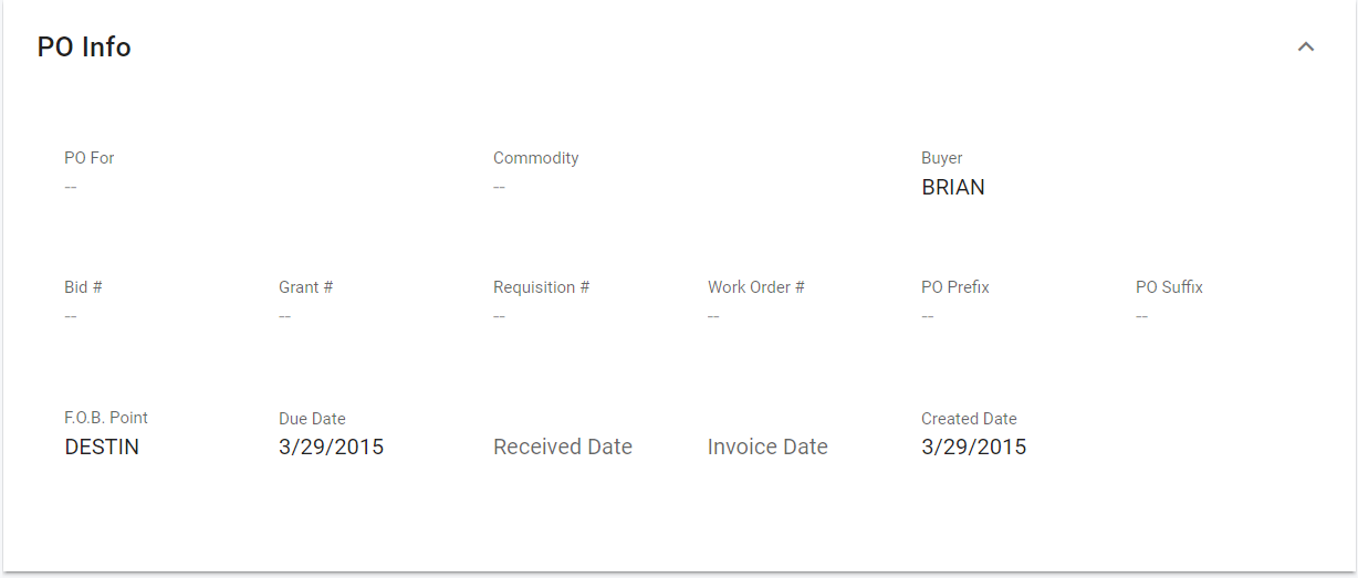 This tab will store the PO info and Vendor Info buttons information, providing a quick way to look up auxiliary information about the PO.