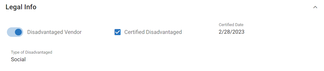 Enter disadvantaged vendor information fields if applicable to this vendor