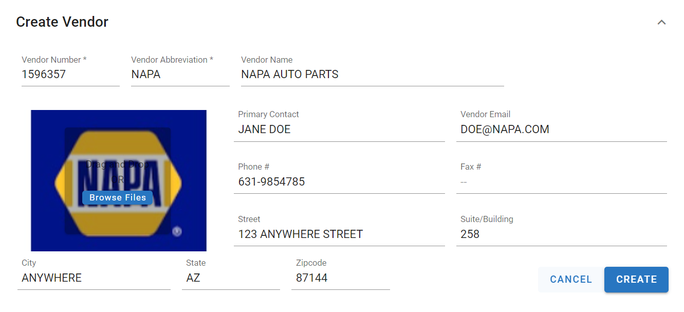 The vendor record contains information about the merchants from whom you purchase parts, supplies, and vehicles or service shops that provide you with services for outside vehicle maintenance and repairs. Vendor records are required if you'll be using the Part Inventory module or tracking vehicle warranties.