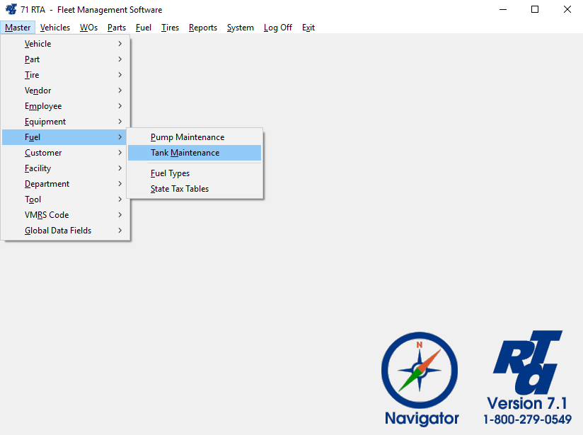 - Select Master > Fuel > Tank Maintenance (MUM) from the RTA main menu.