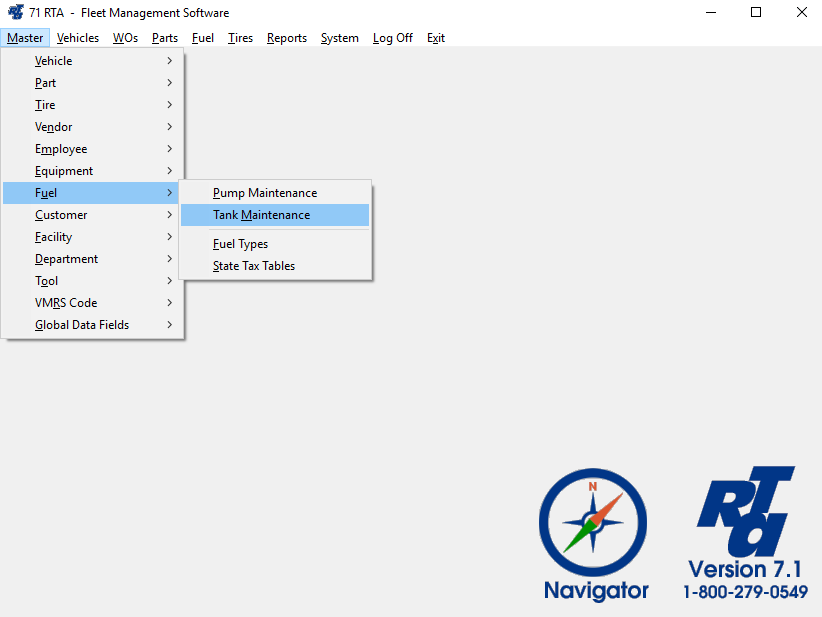 - Select Master > Fuel > Tank Maintenance (MUM) from the RTA main menu.
