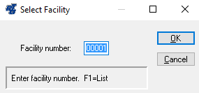 - Enter a “Facility Number” or press “F1” and use the lookup list.