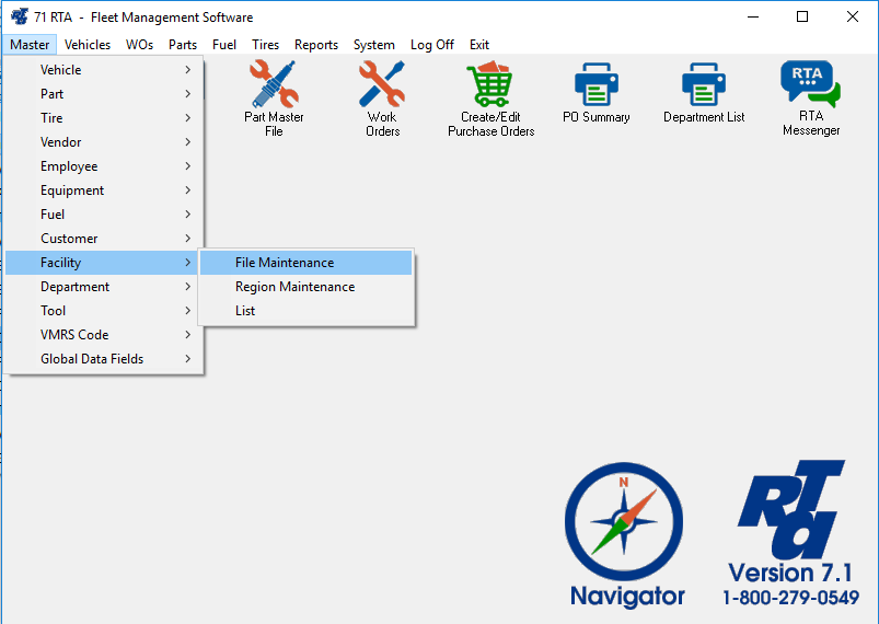 - Select Master > Facility > File Maintenance (MFM) from the RTA main menu