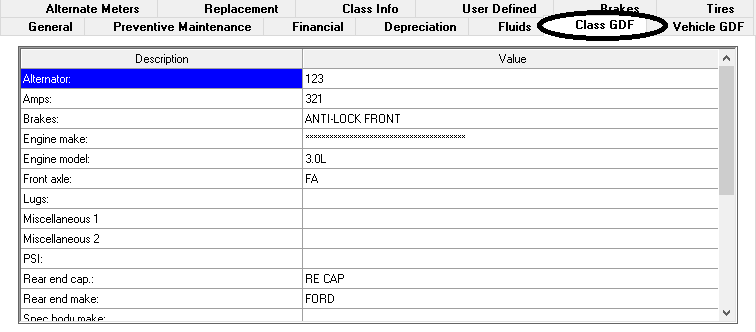 - Enter the Year, Make, Model, Serial Number (VIN), License Plate, Class Code, Department, and Customer in the upper section. When the cursor is in any of these fields, a “Help Line” is displayed at the lower left corner of the window, prompting you for information and advising if a list is available using the “F1” key on your keyboard.