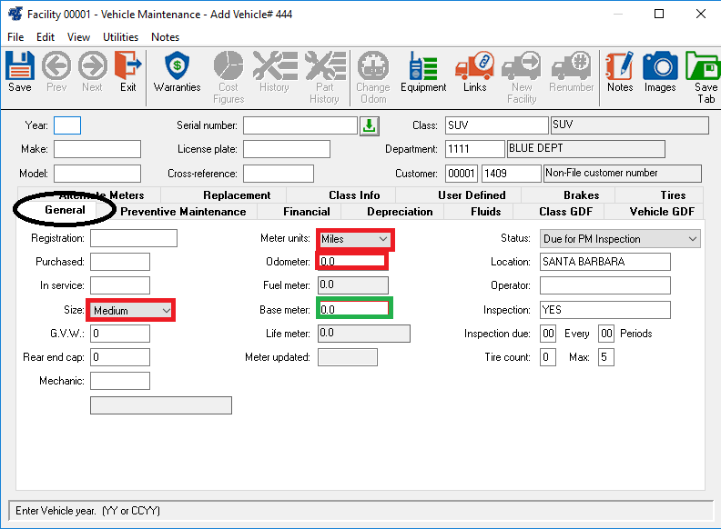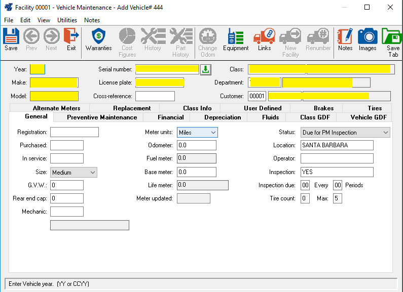 Acquire as much information about each vehicle as you can prior to entering it into the system. (Odometer, PM Schedule, PM History, etc…)