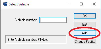 - Enter a vehicle number and select “Add”. The vehicle number is a text field allowing up to eight characters
