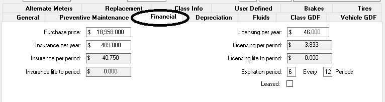 ● Use a Template when adding similar vehicles. This greatly speeds up the process of adding vehicles into the system because most of the data from the template vehicle, including PM schedules and warranties, is copied to the vehicle being added. The only information that does not come across from the template is the information unique to each vehicle such as meter readings, serial numbers, license plate numbers, and PM histories. Those unique entries will need to be entered, as well as any unit specific data from the Class Info and User Defined Tabs.
