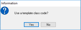 - At the prompt, ”Use a template class code?”, select “No” if you wish to create a new Class Code from scratch. Select “Yes” if you wish to use an existing Class as a template for the one you are creating. ****Skip to step 5 if not using a template