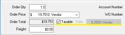 The tax rate from the Vendor File will be displayed and, by default, the “Taxable” box will be checked. If you are not paying tax on the invoice, then uncheck the “Taxable” box.