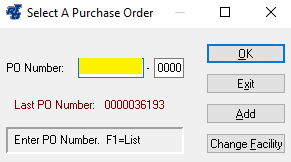 - Select Parts > Purchase Orders > Create/Receive PO (PPC) from the RTA main menu.